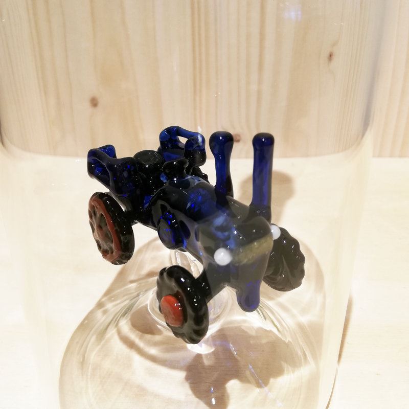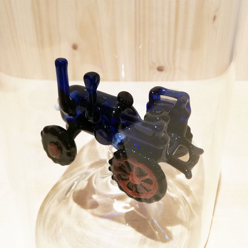 mit Sujet Traktor (dunkelblau) in der Flasche