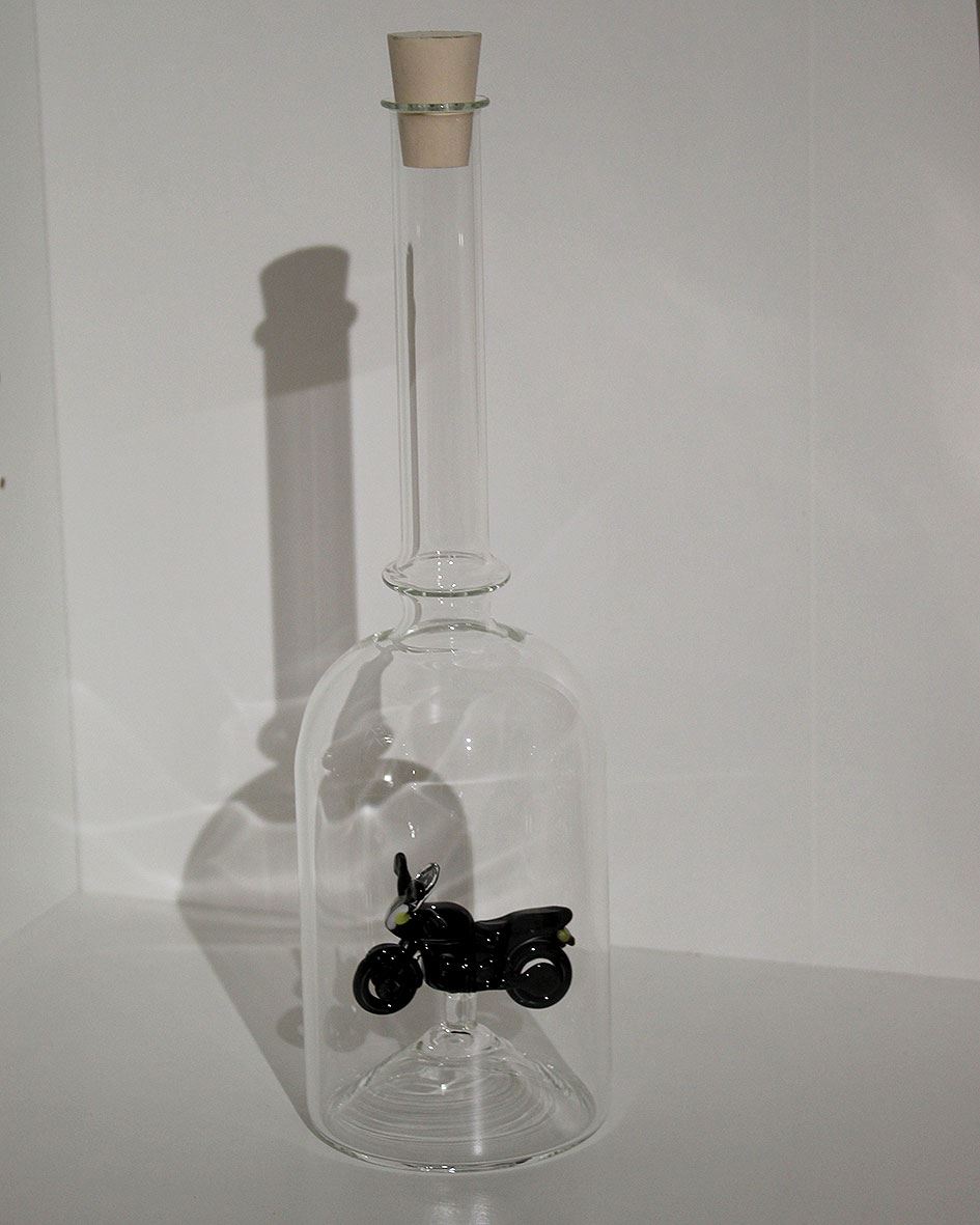 mit Motorad-Sujet in der Flasche