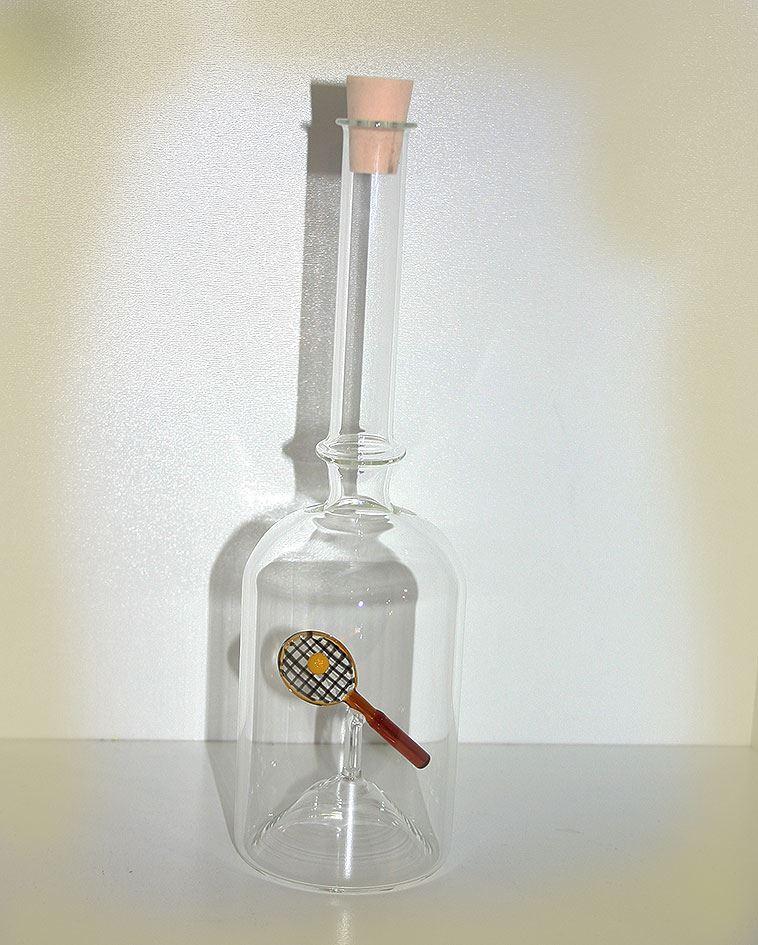mit Tennisschläger-Sujet in der Flasche (Glas)