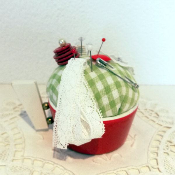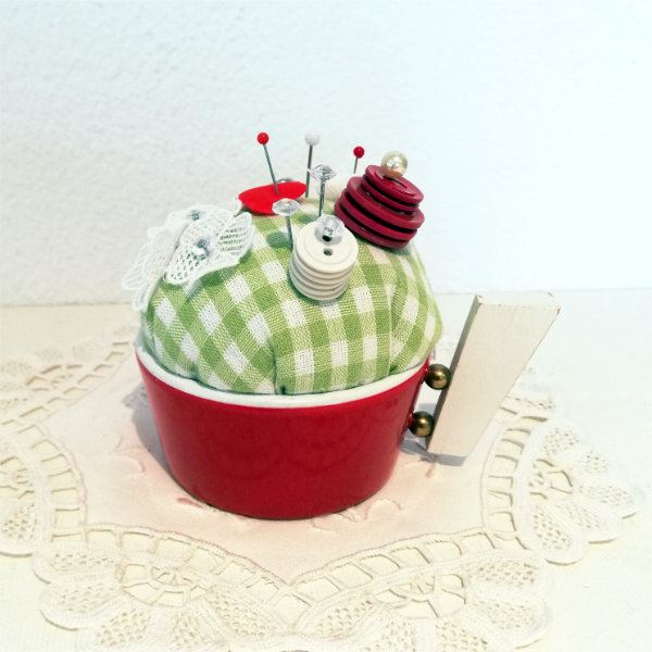 Überzug Nadelkissen: Stoff weiss/hellgrün karriert
